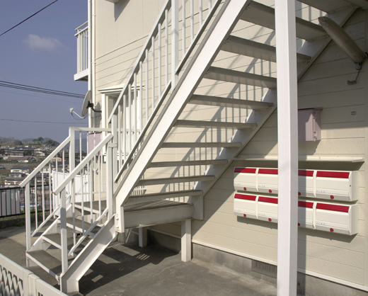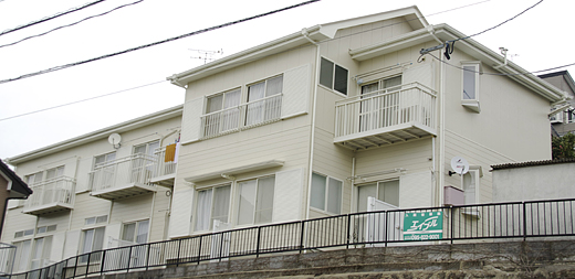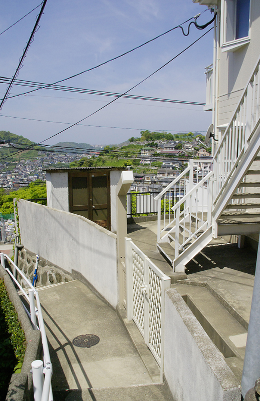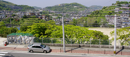 室内(A-2号室)からバス道路越しに大浦中学校校庭方向を望む